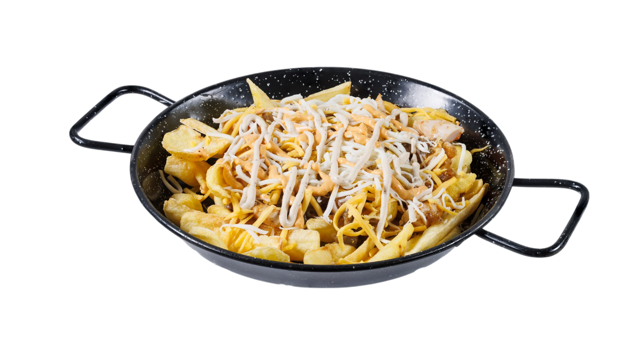 (Csónakburgonya, 100% csirkemell, Fajitas fűszeres sült hagymaragu, kaliforniai paprika, chili cheddar cheese, reszelt mozzarella, Bacon Mayo)