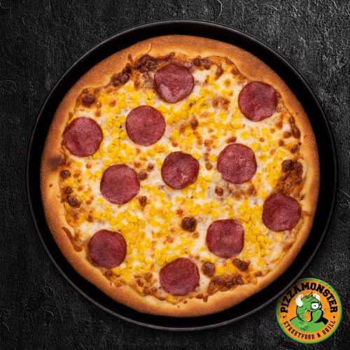 (paradicsomos alap, szalámi, kukorica, mozzarella)